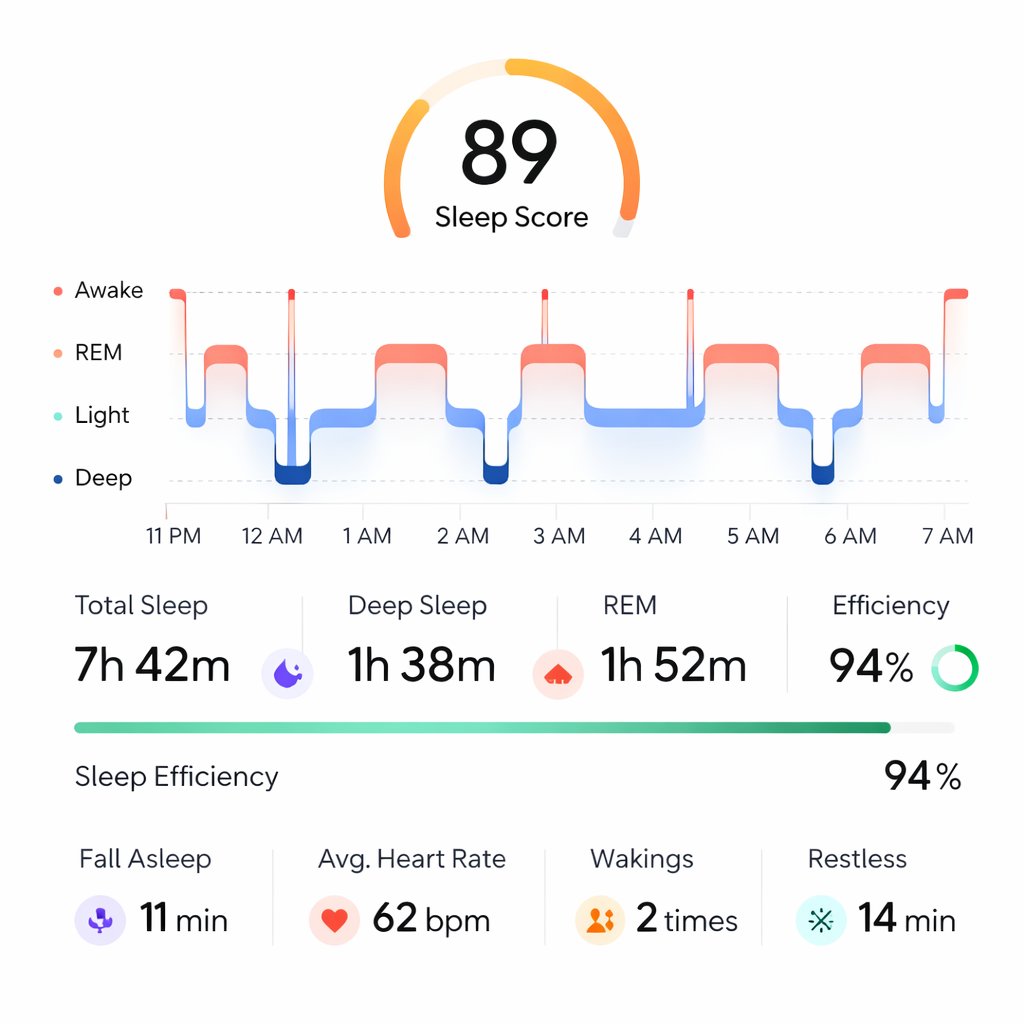 Understand your sleep, recovery, and daily wellness with clear, personalized insight delivered effortlessly through AXON Nano.